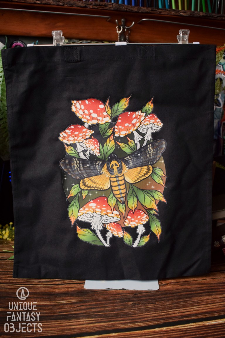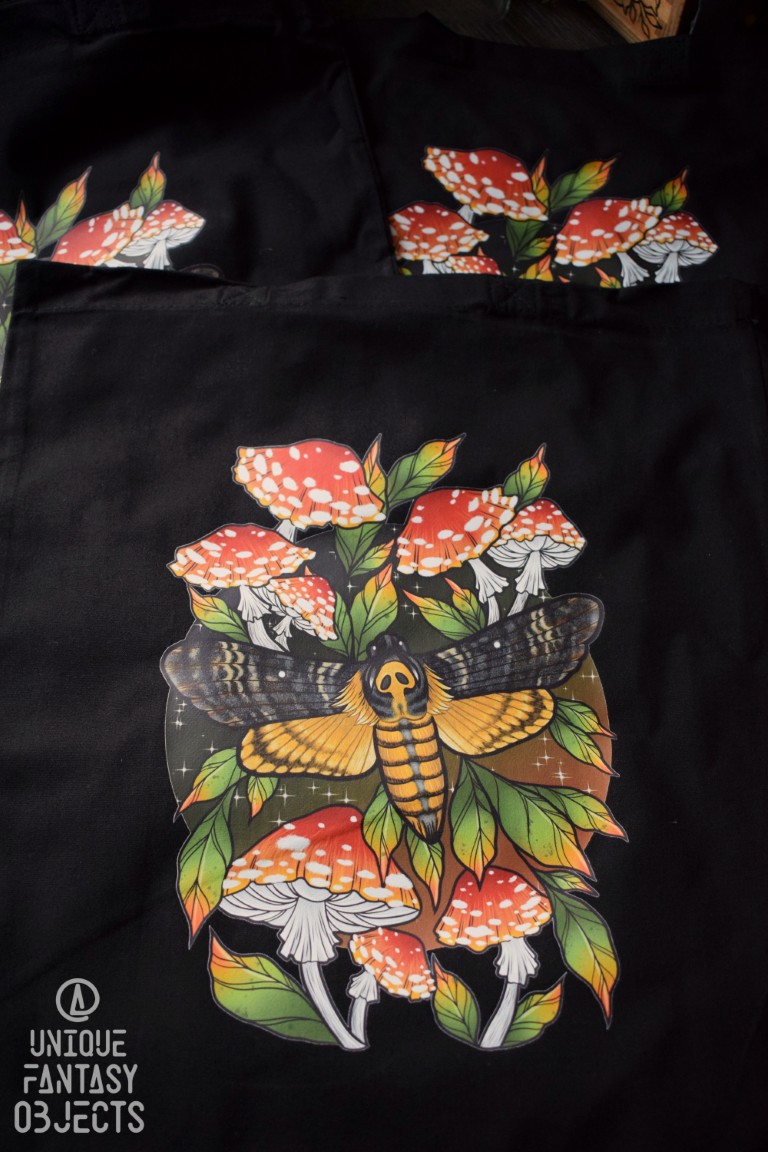 Bawełniana torba ze zmierzchnicą trupią główką z muchomorami (Unique Fantasy Objects)