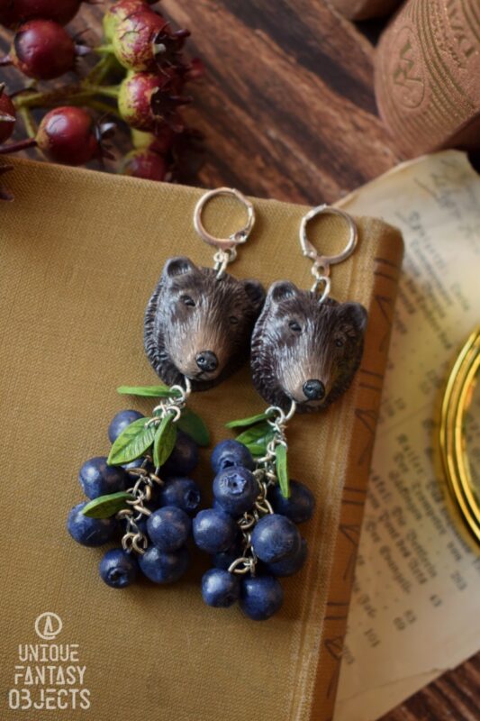Kolczyki z niedźwiedziem i borówkami (Unique Fantasy Objects)