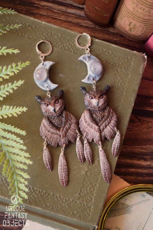 Kolczyki z puchaczem i łańcuszkami (Unique Fantasy Objects)