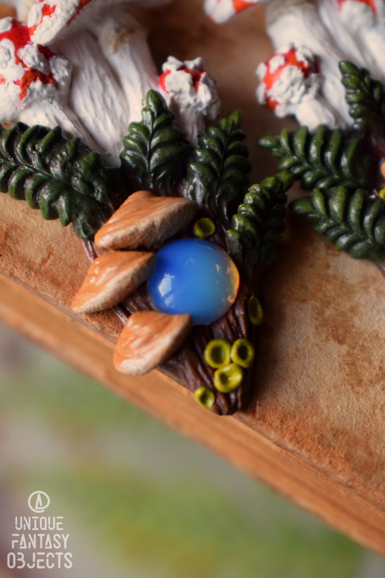 Rzeźba została wyrzeźbiona z masy polimerowej, a następnie pomalowana farbami akrylowymi. Do rzeźb zaczepiłam mocne bigle ze stali chirurgicznej, dzięki czemu możesz bezpiecznie je nosić w uszach. Całość zabezpieczyłam lakierem artystycznym, dzięki czemu kolory na ozdobie nie będą blaknąć i możesz spokojnie ją nosić, bez obawy o zarysowania.