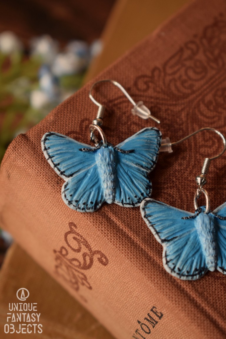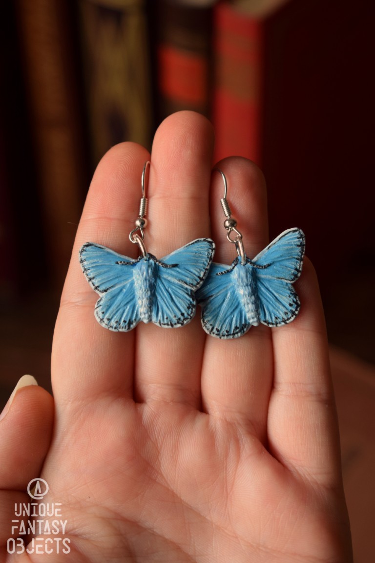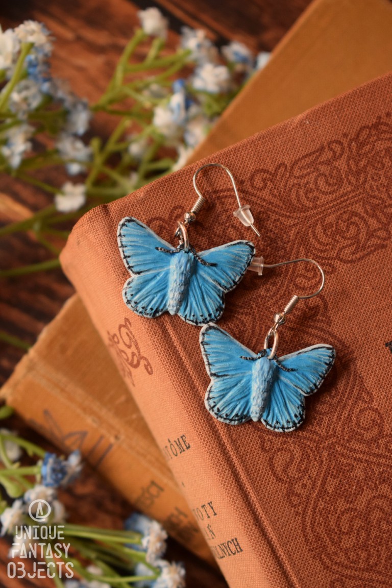 Kolczyki z rzeźbą motyla modraszek adonis.