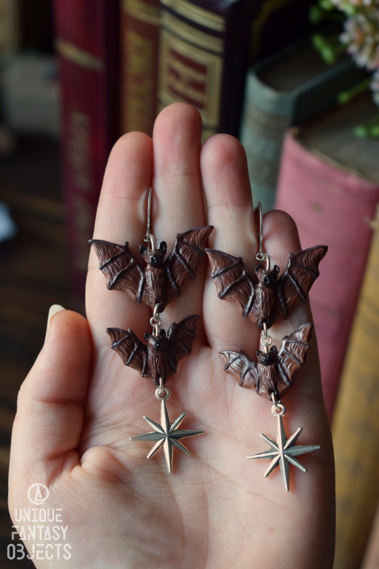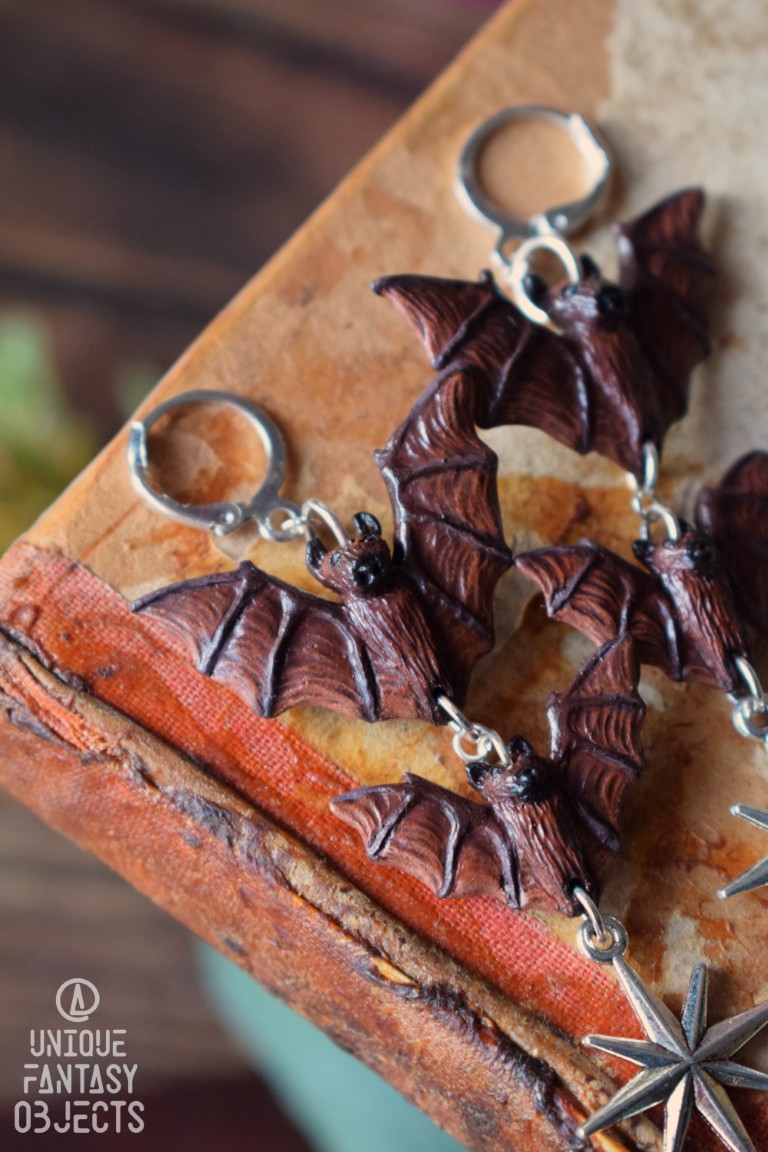 Kolczyki z rzeźbą nietoperza nocek duży.