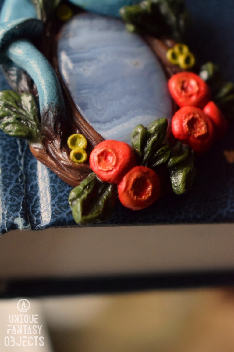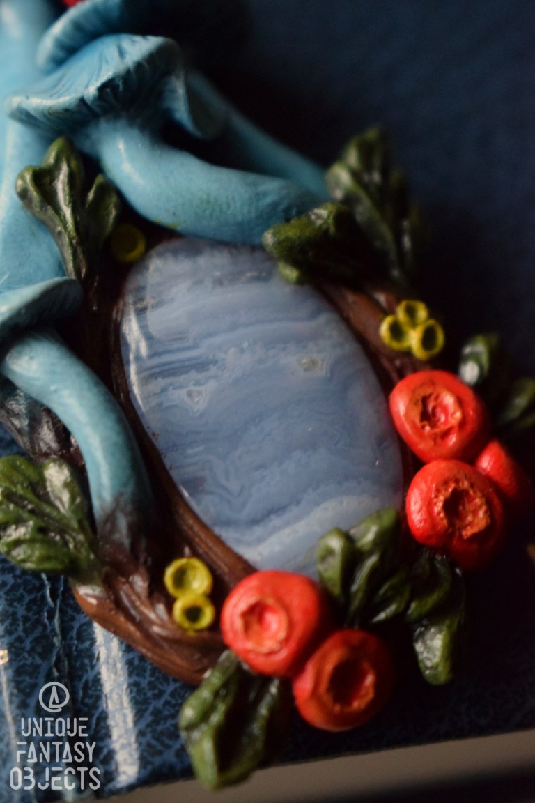 Rzeźba została wyrzeźbiona z masy polimerowej, a następnie pomalowana farbami. Do wisiorka zaczepiłam mocne kółeczko oraz mocny sznurek bawełniany woskowany. Całość zabezpieczyłam lakierem artystycznym, dzięki czemu kolory na ozdobie nie będą blaknąć i możesz spokojnie ją nosić, bez obawy o zarysowania.