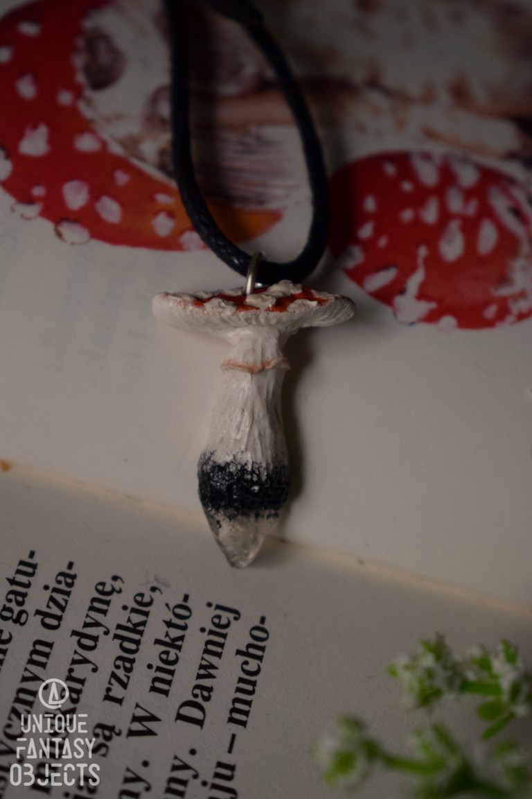 Grzyby są wdzięcznym tematem do tworzenia. Piękne, różnobarwne główki wystające wśród zieleni liści i traw, przyciągają wzrok ciekawskich. Te barwy, idealnie ze sobą współgrają. Tworząc ten naszyjnik, chciałam żeby wyglądały jak miniaturowy kawałek natury prosto z lasu.