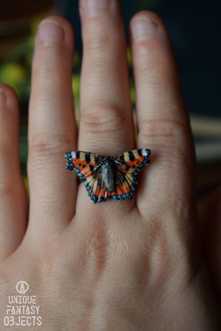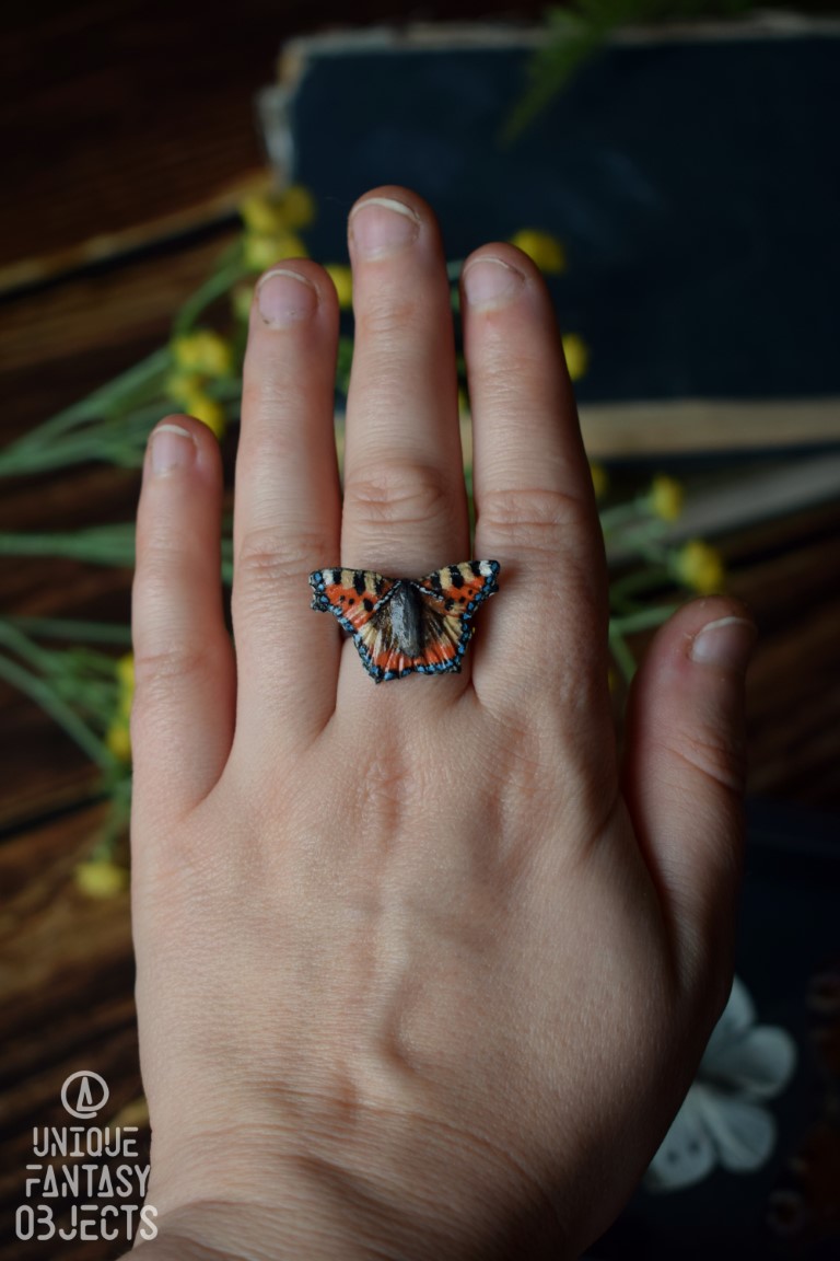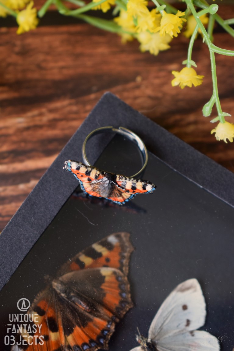 Regulowany pierścionek z motylem rusałka wierzbowiec.
