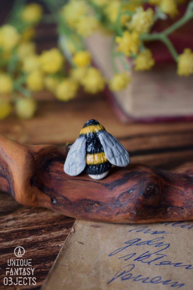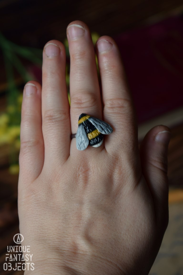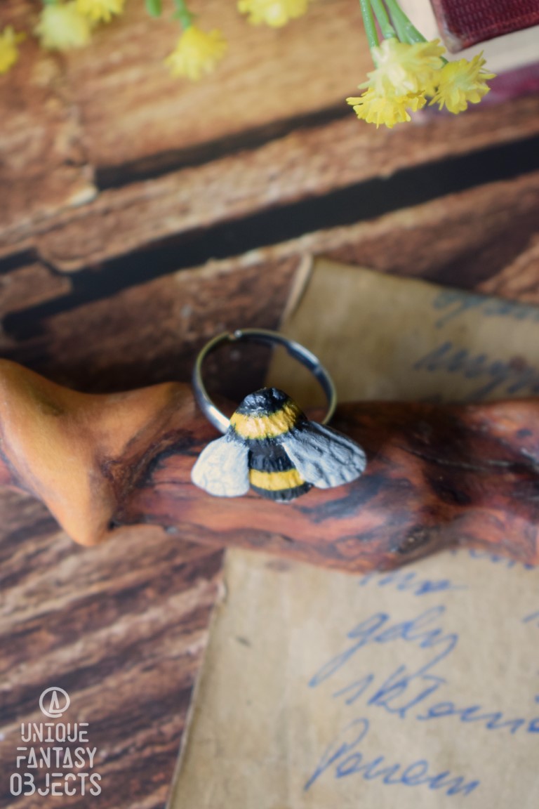 Regulowany pierścionek z rzeźbą trzmiela.