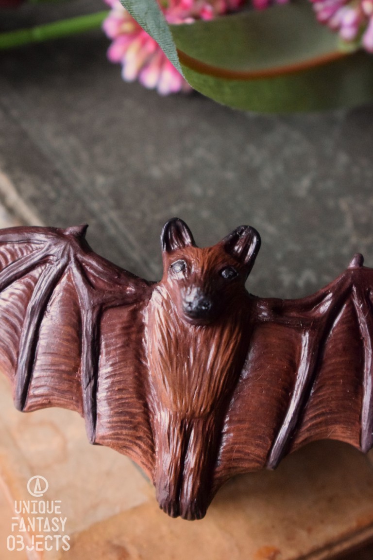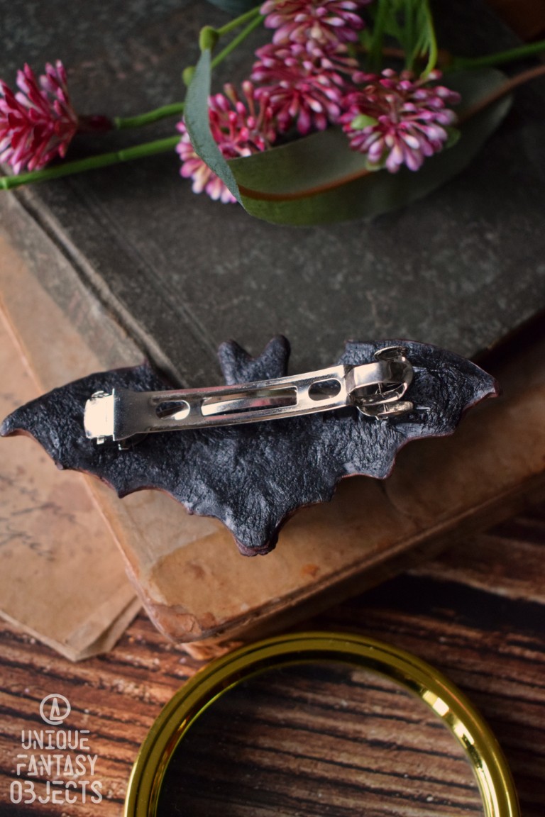 Spinka została wyrzeźbiona z masy polimerowej, a następnie pomalowana farbami akrylowymi. Rzeźbę zaczepiłam do bazy spinki, dzięki czemu możesz spiąć nią włosy. Całość zabezpieczyłam lakierem artystycznym, dzięki czemu kolory na ozdobie nie będą blaknąć i możesz spokojnie ją nosić, bez obawy o zarysowania.